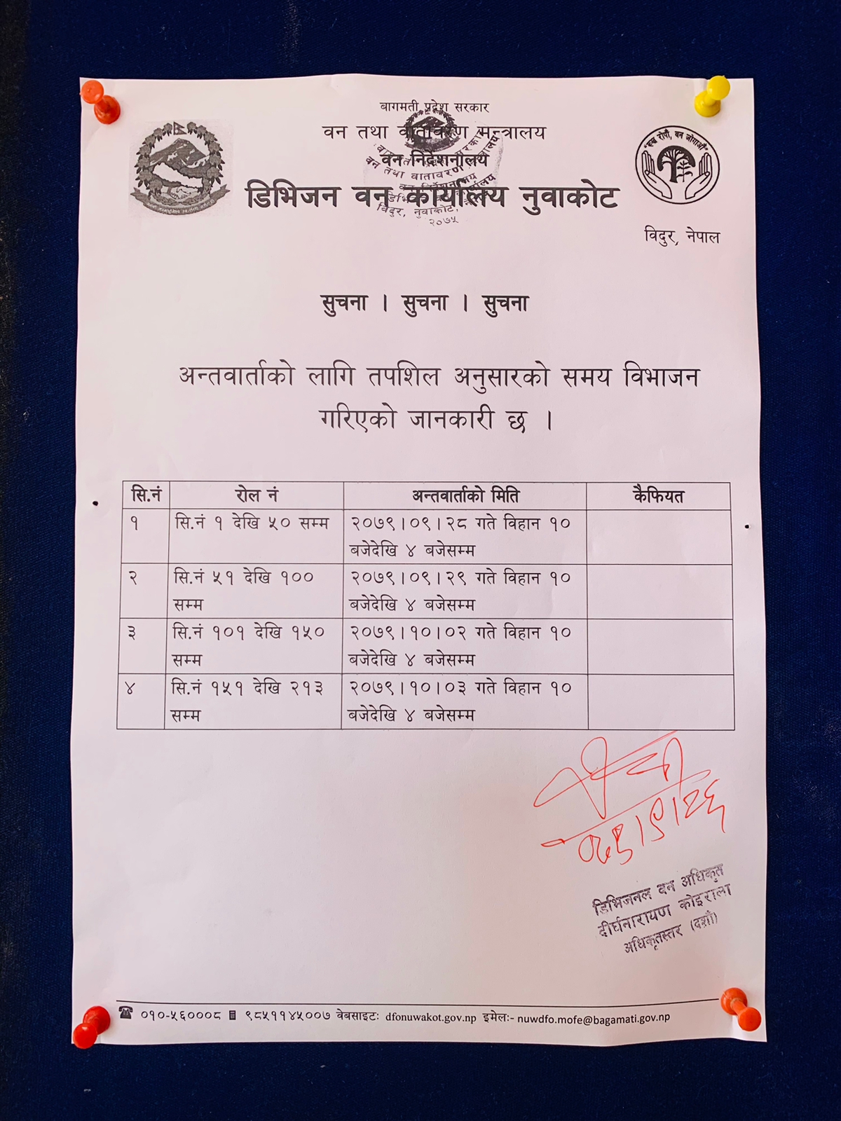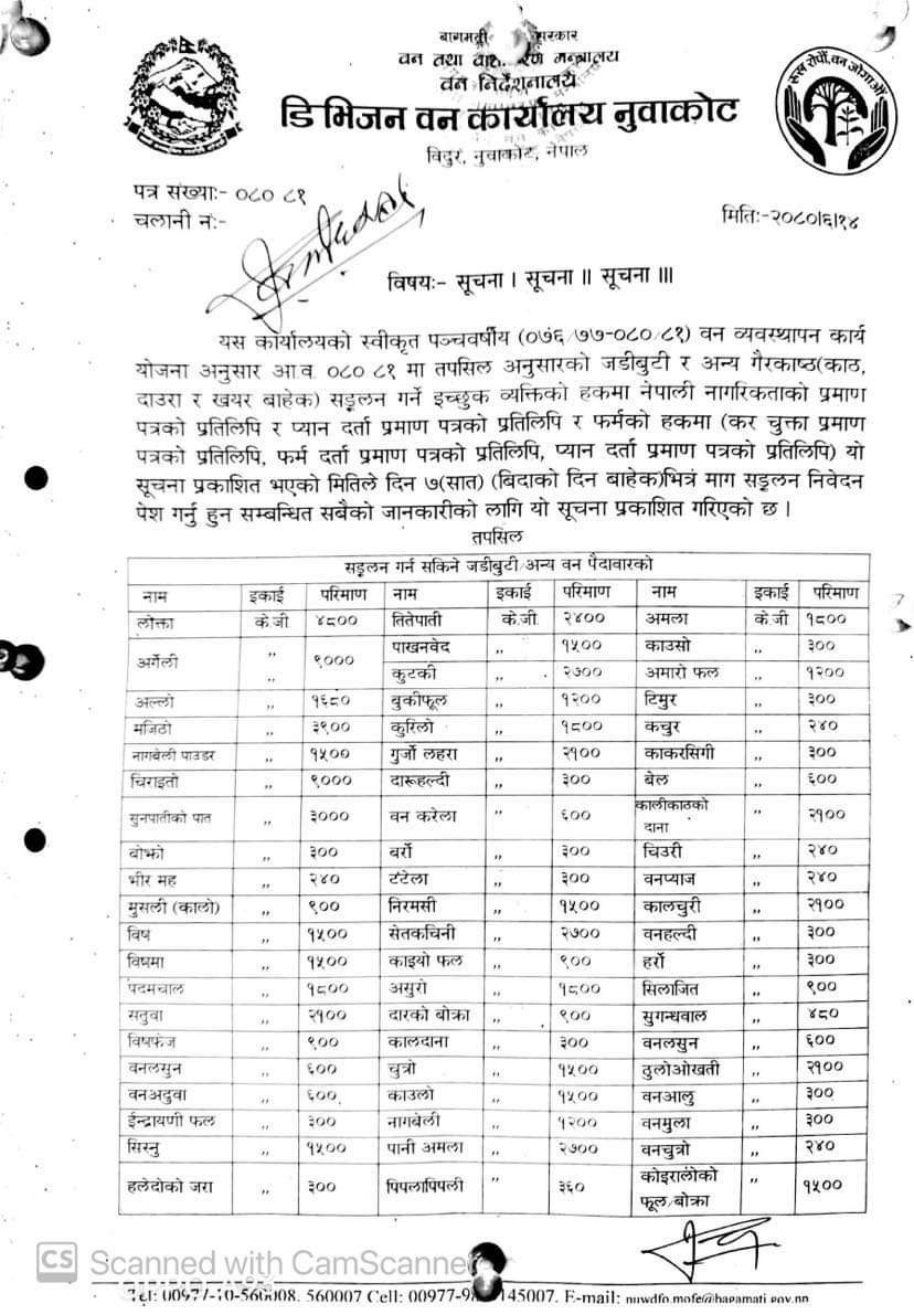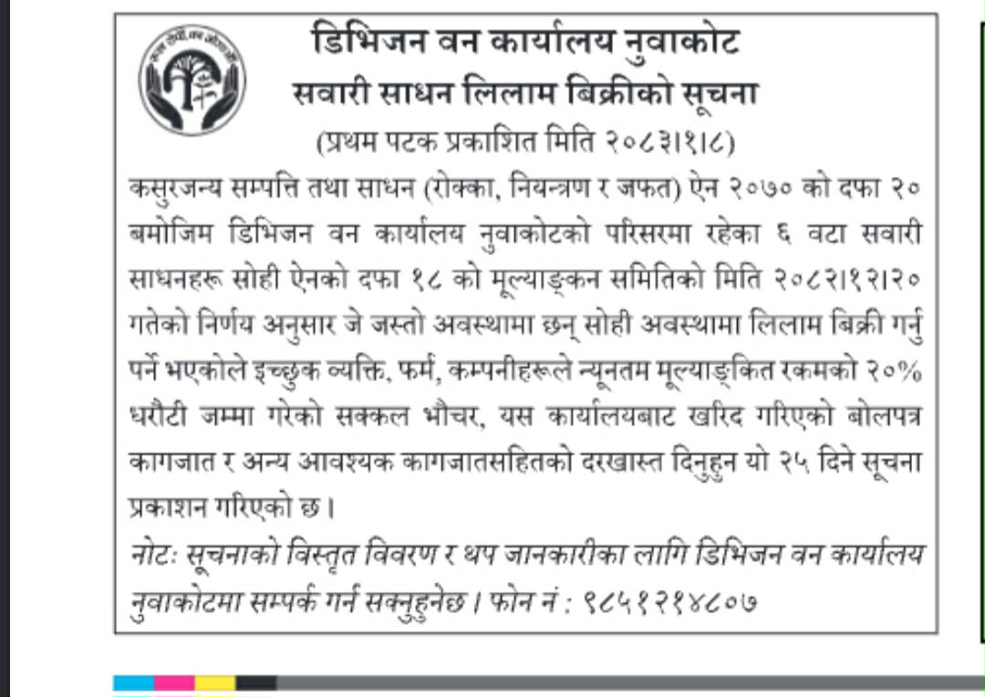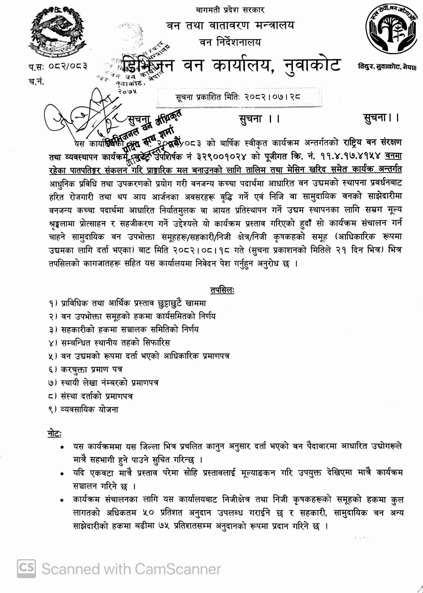 डिभिजन वन कार्यालय, नुवाकोटको आ.व २०७९।०८० तर्फको स्वीकृत वार्षिक कार्यक्रम संचालनको लागि प्रस्ताव आवहान् सम्बनधमा
