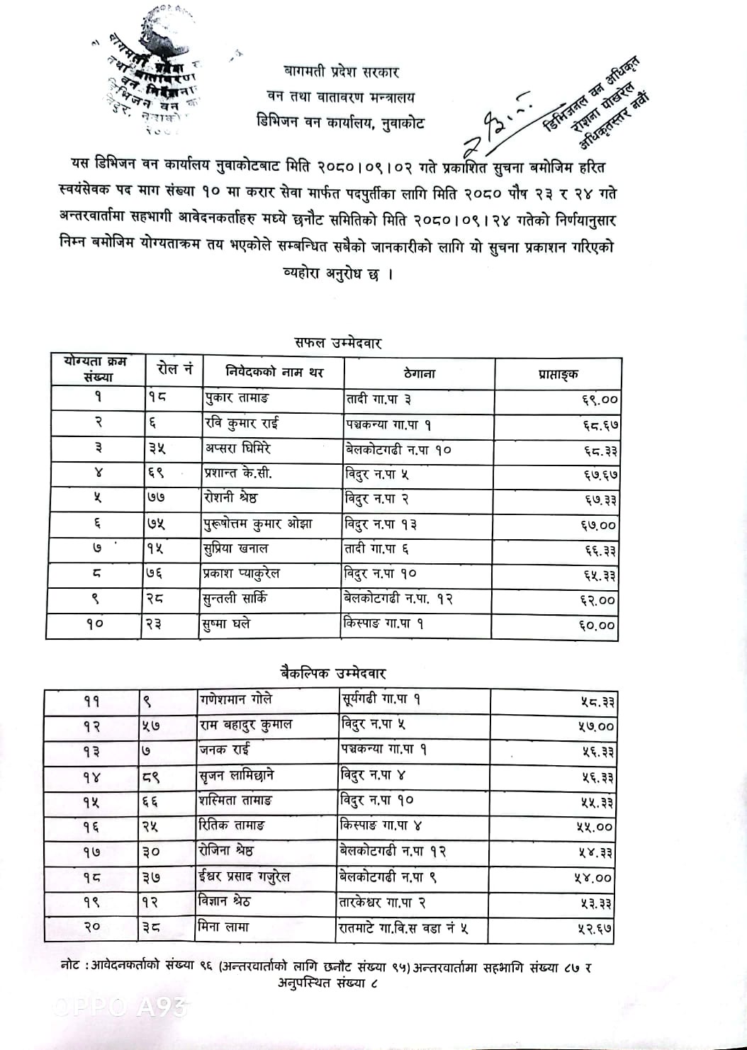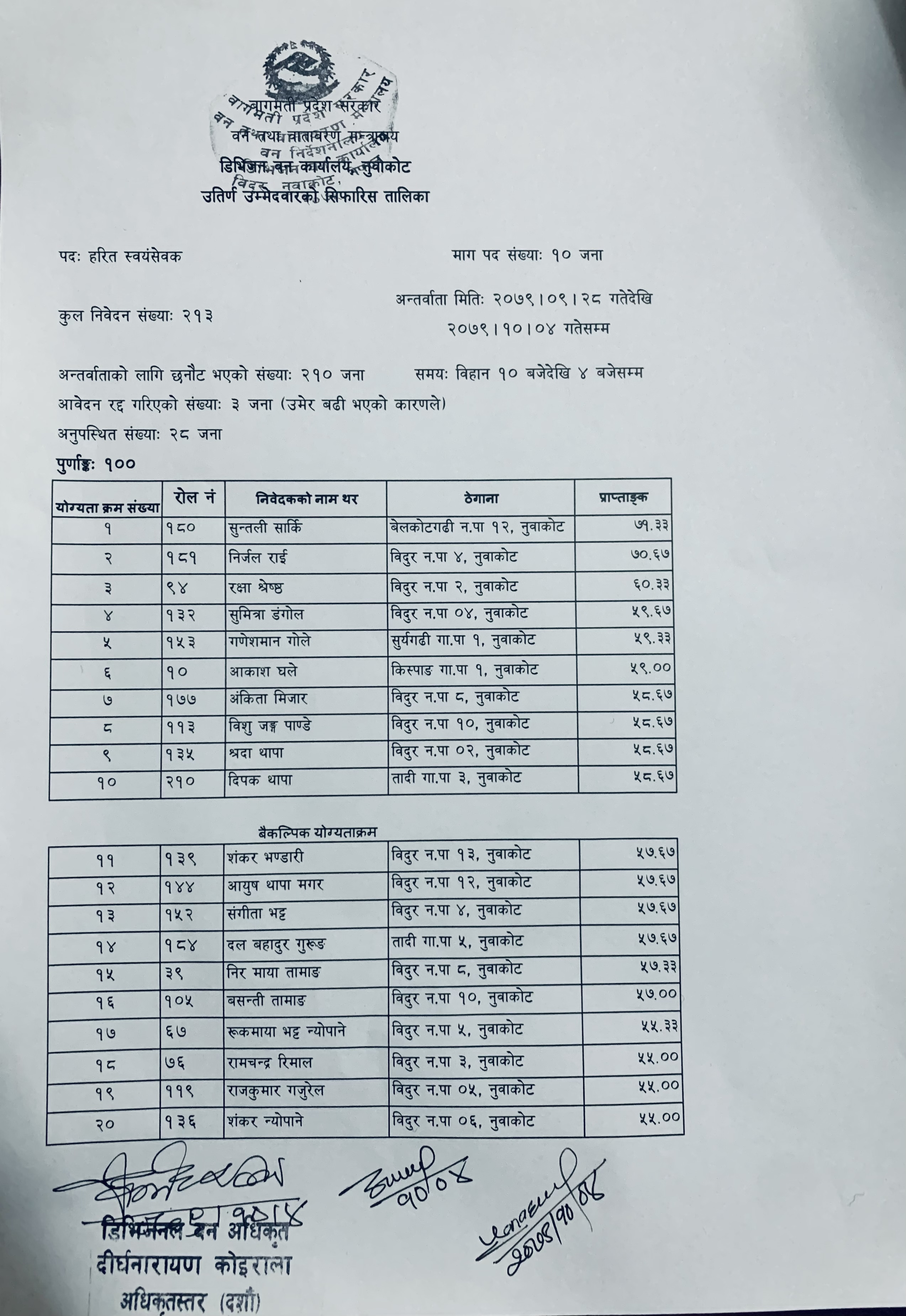 हरित स्वयमसेवक पदको लागि अन्तवार्ताको लागि स्वीकृत नामावली २०८०।०८१