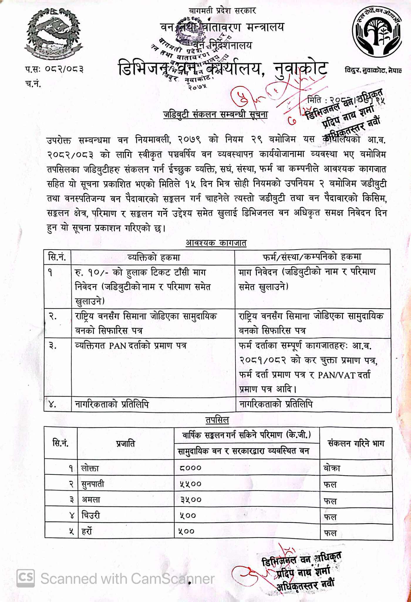 जडिबुटी संकलन सम्बन्धि १५ दिने सुचना